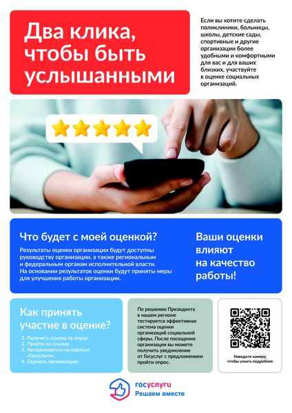 Каждый регион самостоятельно выберет типы организаций для оценки. Граждане смогут высказаться о доступности информации, доброжелательности сотрудников, чистоте и комфорте помещений, наличии безбарьерной среды. Пройти короткий опрос можно на портале «Госуслуги»: уведомления придут в личный кабинет, мобильное приложение и на электронную почту.